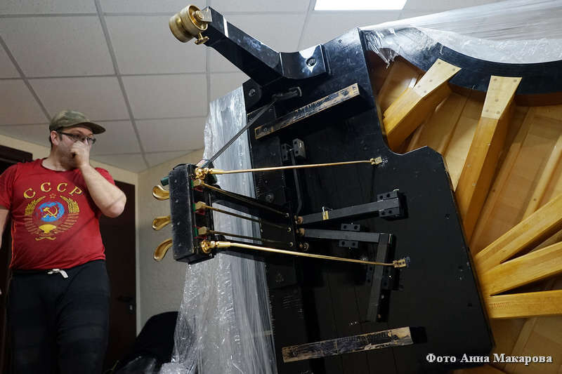 Путешествует инструмент в сопровождении настройщика из Японии. Так он и приехал сегодня в Курган – за ночь преодолел дорогу от Екатеринбурга. В 10 часов утра рояль перенесли на сцену филармонии. В помещении инструмент должен простоять сутки. Затем с ним поработает настройщик и подготовит к концерту.
