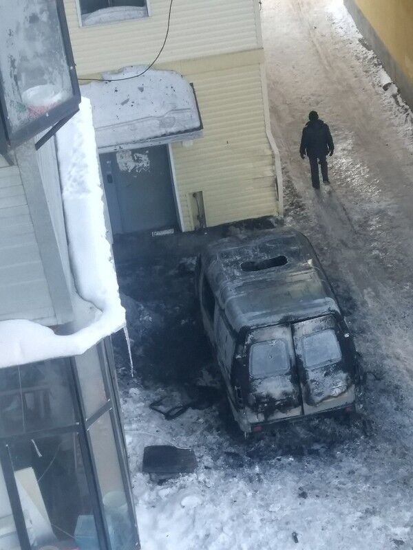 Сегодня ночью сгорел автомобиль «Соболь», припаркованный во дворе дома на улице Пролетарской, 65.