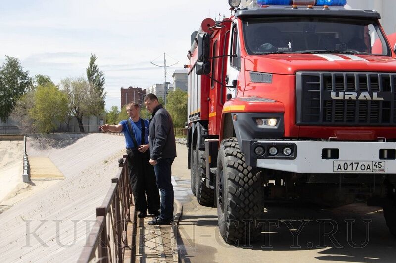 Так, он осмотрел набережную реки Тобол в районе Курганской филармонии. Там на расчистке нижнего яруса набережной от ила и грязи, принесенных большой водой, работает машина МЧС.