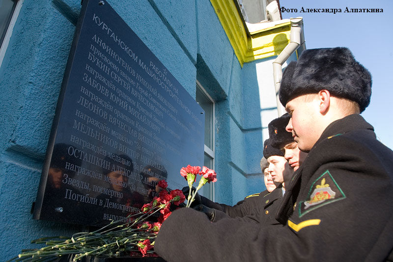 — Эти молодые ребята рано ушли из жизни. Они — люди высокого воинского долга, мужества. На примере их подвигов выросло не одно поколение россиян. Вечная память павшим, — сказал председатель организации воинов-интернационалистов ОАО «Курганмашзавод» Николай Дубровин.