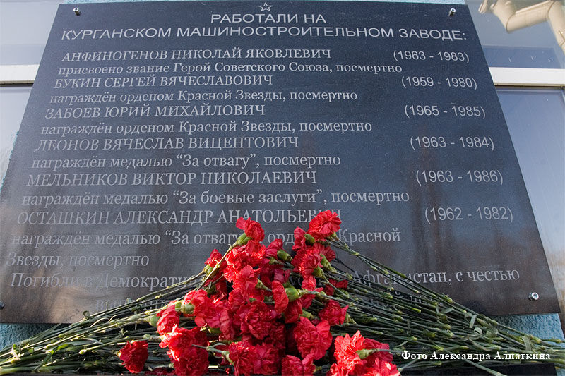 В преддверии 25-летней годовщины вывода войск из Афганистана, на ОАО «Курганмашзавод» прошло открытие мемориальной доски в честь заводчан, погибших при исполнении интернационального долга.