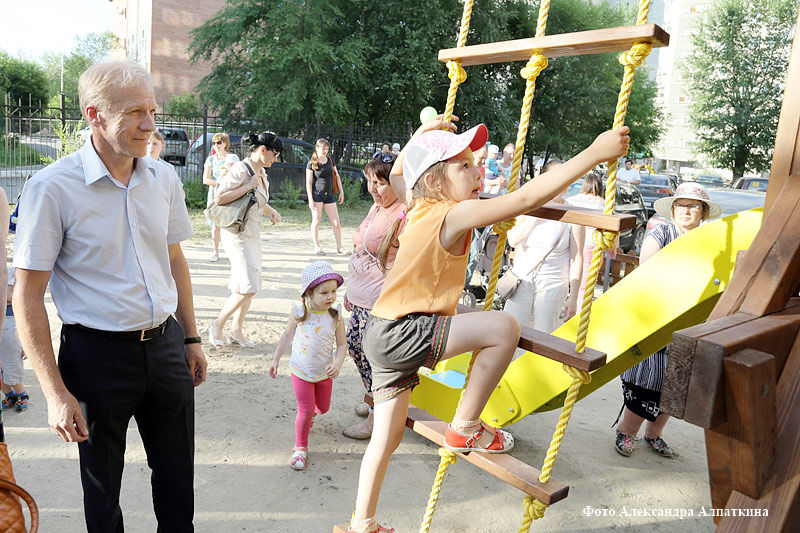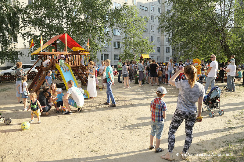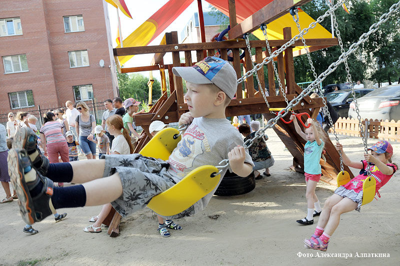 Строили площадку все вместе, помогали даже жители соседних домов. Постепенно во дворе установили новые качели, поставили горки, скамейки, песочницу. По словам жильцов дома № 16 по ул. Зорге, теперь во дворе никогда не умолкает детский смех, сюда приходят играть ребята со всей округи.