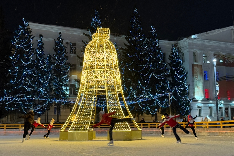 Каток на центральной площади Кургана начал работу в новогоднем сезоне. Как сообщили в городском культурно-досуговом центре, торжественная церемония открытия состоялась 28 декабря.