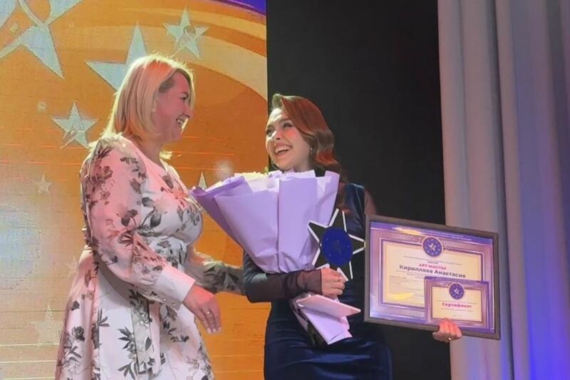 Звание «Арт-Мастер» получила Анастасия Кириллова в номинации «Эстрадный вокал: сольное исполнение» в возрастной категории 20-25 лет из народного коллектива студии эстрадного вокала «Откровение» Культурно-досугового центра молодежи и народного творчества под руководством Надежды Худяевой.