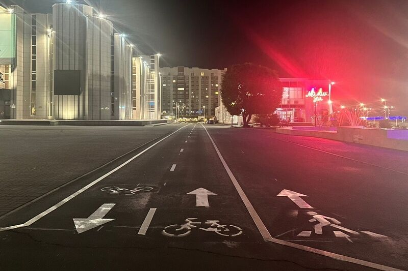 В Кургане появилась разметка для велодорожек на тротуарах
