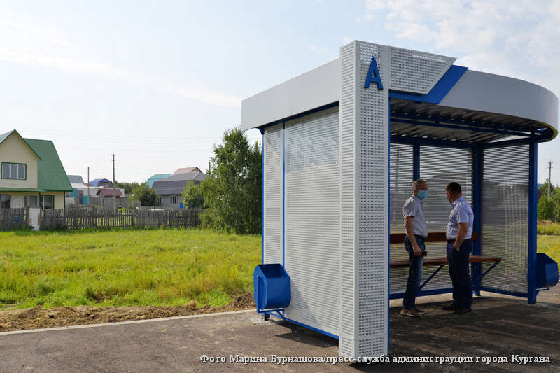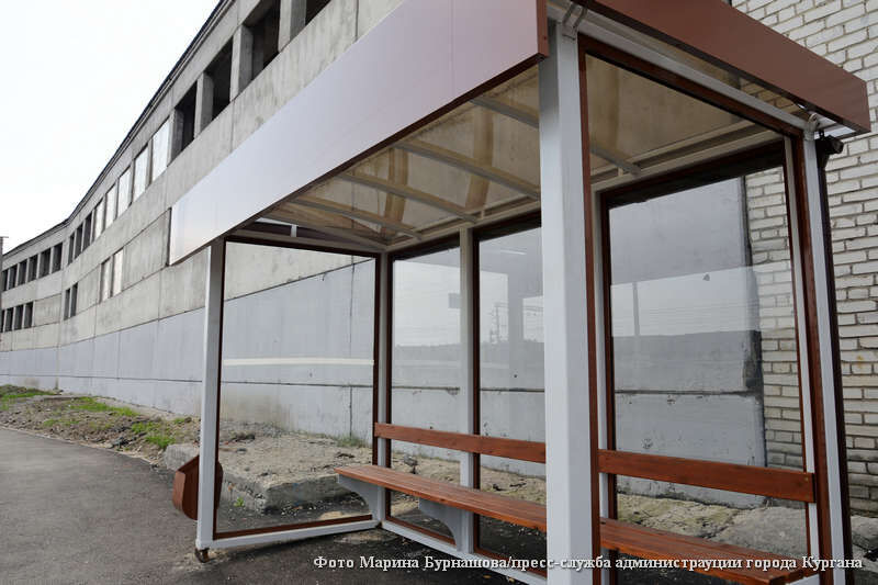 Четыре павильона из перфорированного металлического листа установили на Восточном подъезде. Перфорация металлических павильонов защитит конструкции от ветра. Три стеклянных остановки поставили на улице Половинской. Стеклянный остановочный комплекс установлен и на улице Коли Мяготина, в районе бассейна «Дельфин». На стекле будут нанесены рисунки, сейчас их варианты согласовываются. Тематика – виды старого Кургана, ночной Курган, природный мир Зауралья.