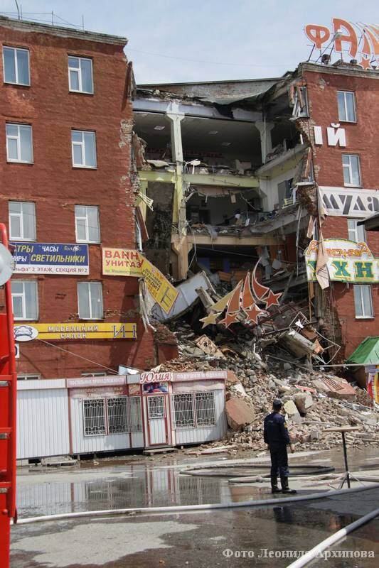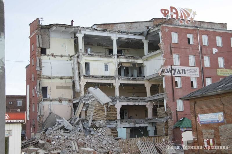 Напомним, здание заброшено на протяжении более 8 лет. Три этажа центральной части торгового центра «Альфа-база», расположенного по ул. Омская, 101, обрушились утром 8 июня 2011 года. Через несколько дней опасную часть стены поврежденного корпуса снесли напором воды. Спустя 4 месяца, ночью 12 октября, рухнуло левое крыло. В обоих происшествиях никто из людей не пострадал. В мае 2012 по решению суда запрещена эксплуатация корпуса.