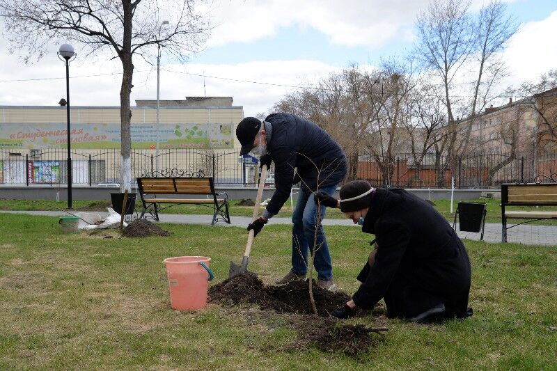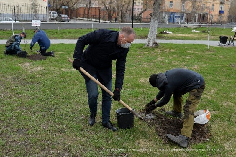В Кургане в самом разгаре весенняя озеленительная кампания. Холодный ветер, хмурое небо и режим самоизоляции не помешали высадить деревья на одной из самых исторически значимых общественных территорий Кургана – в уютном сквере-саду барона Розена. Разумеется, участники субботника соблюдали масочный режим и нормы социальной дистанции.