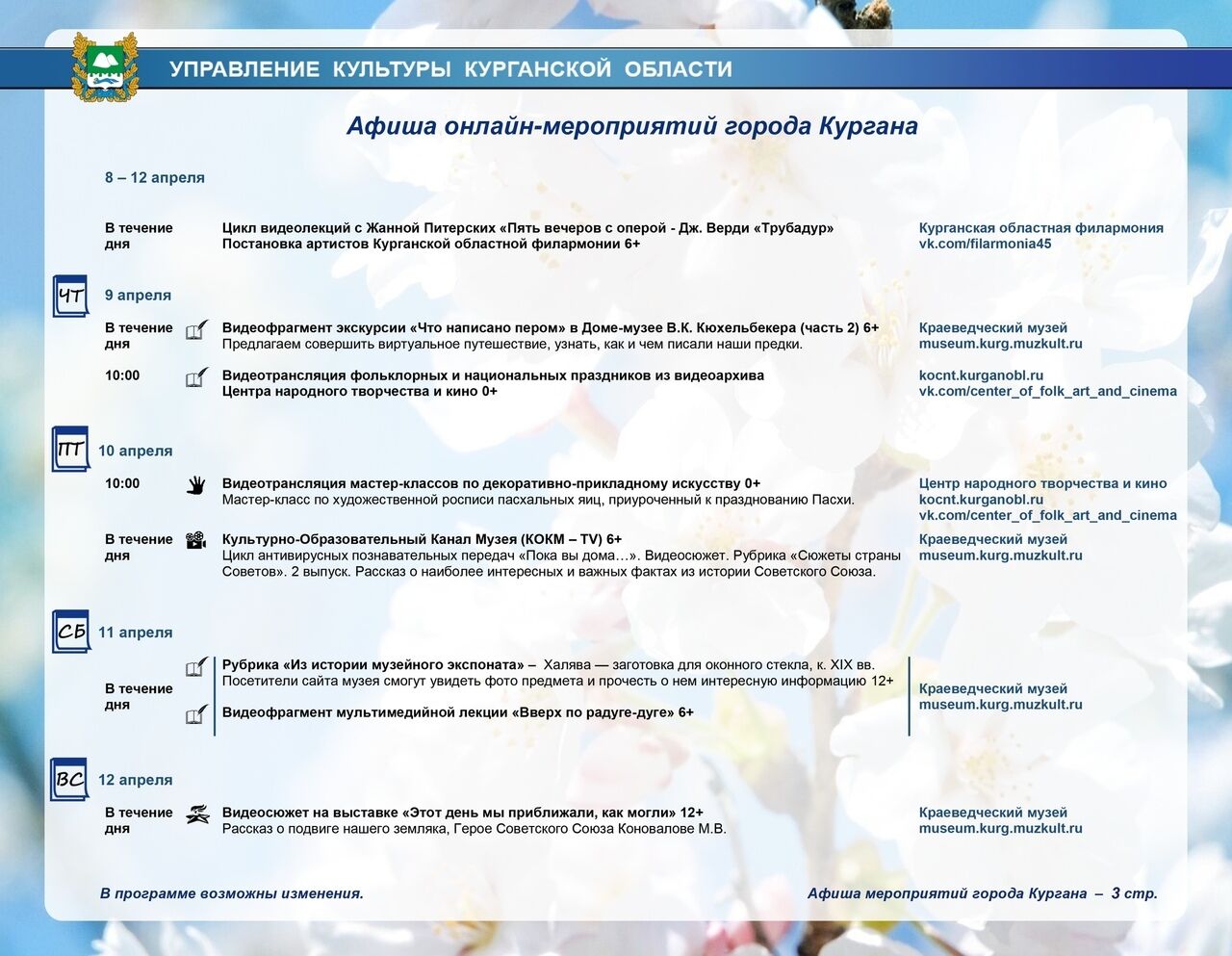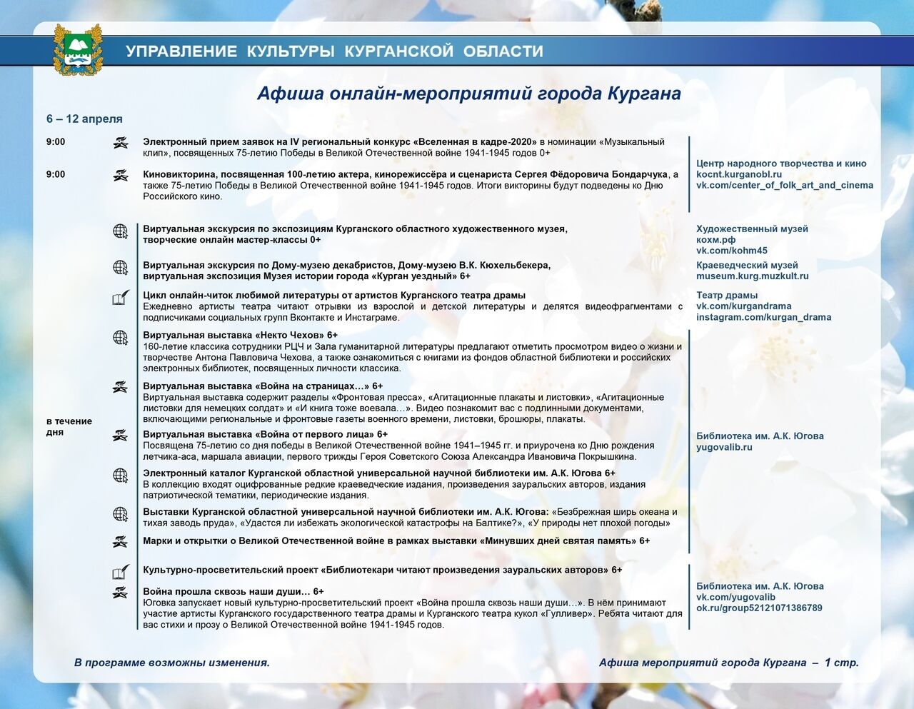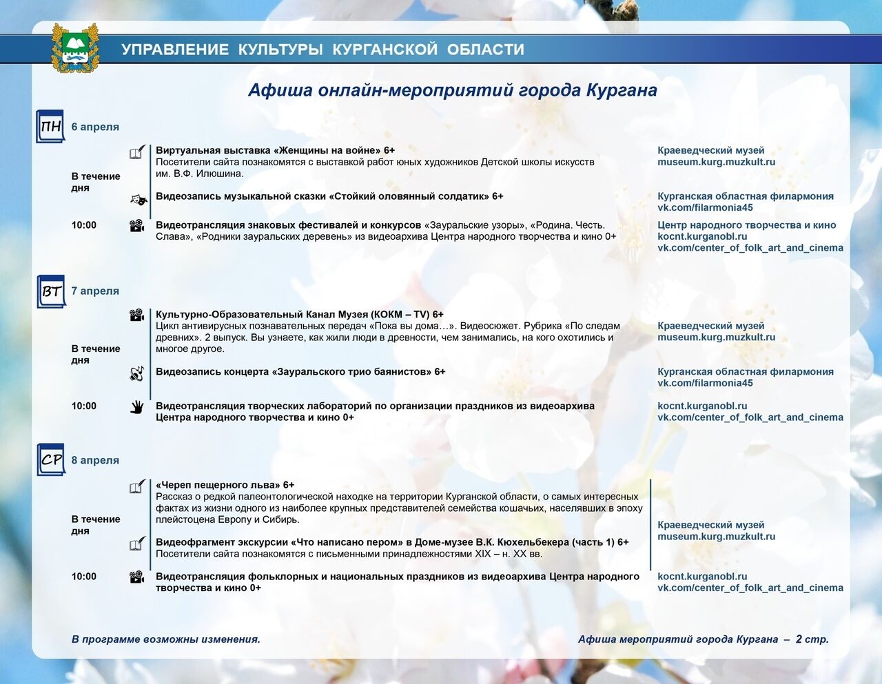 Полная афиша работающих онлайн Курганского театра драмы, областной филармонии, библиотек и музеев