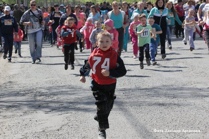 Первыми стартовали воспитанники детских садов города Кургана. Они бежали символьную дистанцию — 1418 метров.