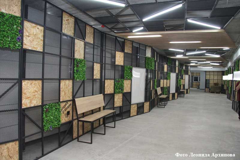 Но на самом деле идея Андрея Олецкого заключается в том, чтобы клиент при поддержке специалистов «Клевера» мог воплотить свой замысел в конкретный проект «под ключ». Таким человеком может выступать любой, от тех, кто делает в квартире евроремонт или строит свой дом, до подрядчика на промышленном объекте. Поэтому в центре находятся несколько специализированных площадок. Каждая из них, как и весь объект в комплексе, выполнена с помощью современных дизайнерских решений, напоминающих по стилистике конструктивизм. Эти помещения предназначены для предоставления спектра сопутствующих услуг, которые необходимы при строительстве: работы по геодезии, решение кадастровых вопросов, найм монтажников и многое другое. Например, предусмотрен сервисный центр, где можно взять в аренду или отремонтировать инструмент.