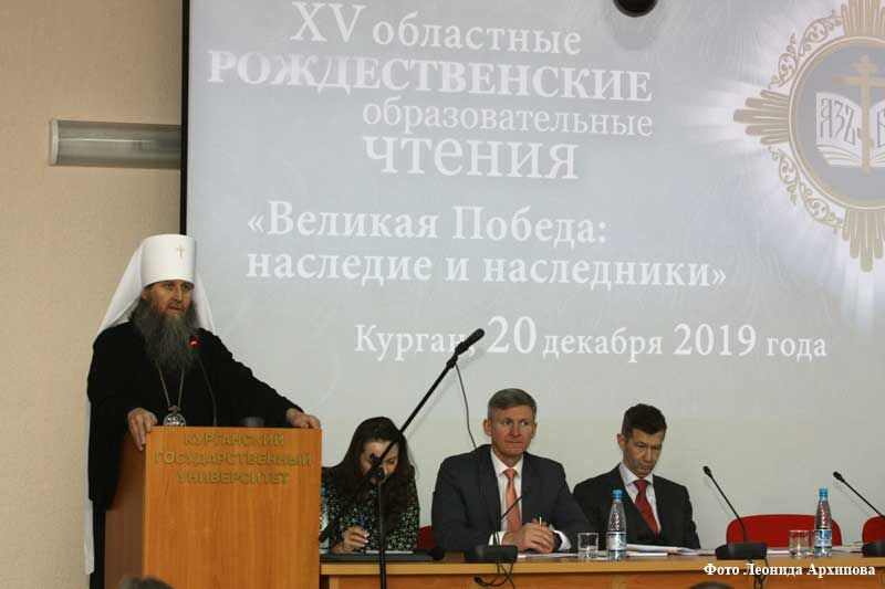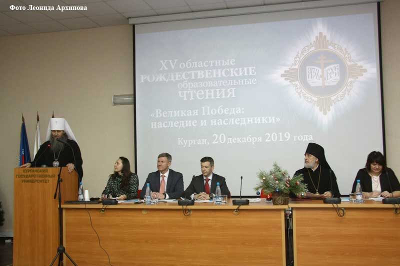 В Курганском государственном университете состоялись ХV областные Рождественские образовательные чтения. В форуме участвовали представители духовенства, представители органов государственной власти и органов местного самоуправления, ученые, аспиранты, студенты вузов, педагоги из Курганской области. Тема встречи – «Великая Победа: наследие и наследники». Выбор темы далеко не случаен – Церковь неизменно была нравственной опорой русского народа в годы тяжелых испытаний, во время Великой Отечественной войны. Об этом стоит вспомнить в преддверии 75-летнего юбилея Победы.