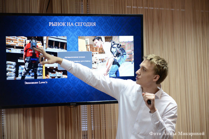 Интерес жюри вызвал проект Марка Пикалова, предложившего разработку пассивного экзоскелета нижних конечностей — проще говоря, поддержку для ног людей, занятых тяжелым физическим трудом.
