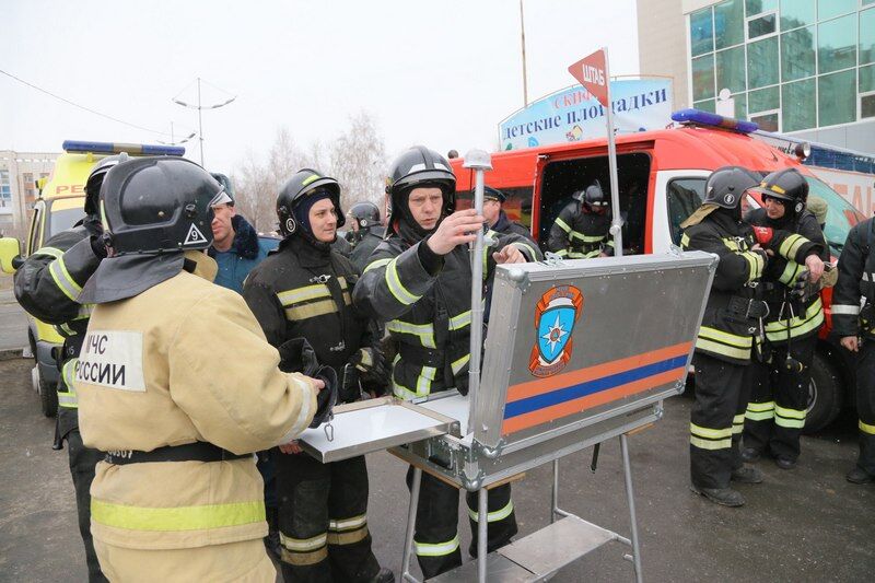 В ТРЦ «Пушкинский», по замыслу учений, люди не смогли самостоятельно выбраться из кинозала № 1. Их спасли и вывели на улицу через аварийный выход. Всего в учениях было задействовано 36 человек личного состава и 16 единиц техники МЧС.