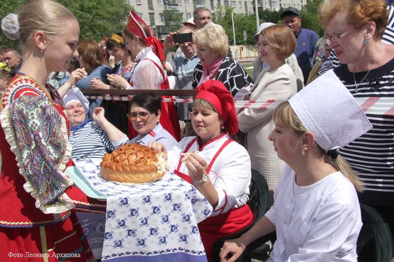 «День сырка» сопровождался веселыми народными песнями и плясками, девицы-красавицы подносили всем гостям сладкие пышные караваи, растекались над Троицкой площадью сводящие с ума ароматы гигантского рыбного пирога. Громадный пирог, составленный из пирогов чуть поменьше, но тоже внушительных размеров, являл собой настоящую инсталляцию – произведение искусства. Когда это чудо монументального кулинарного жанра открылось взорам горожан, раздались громкие одобрительные возгласы – и стало понятно, почему веселые ведущие фестиваля, Курганочка и Экскурсмэн, назвали демонстрацию мега-пирога «вау-акцией».