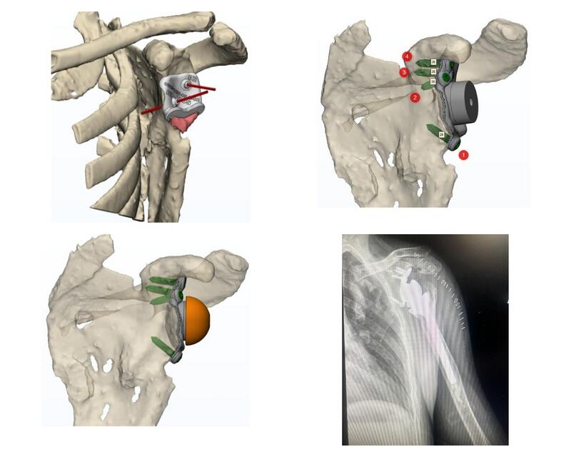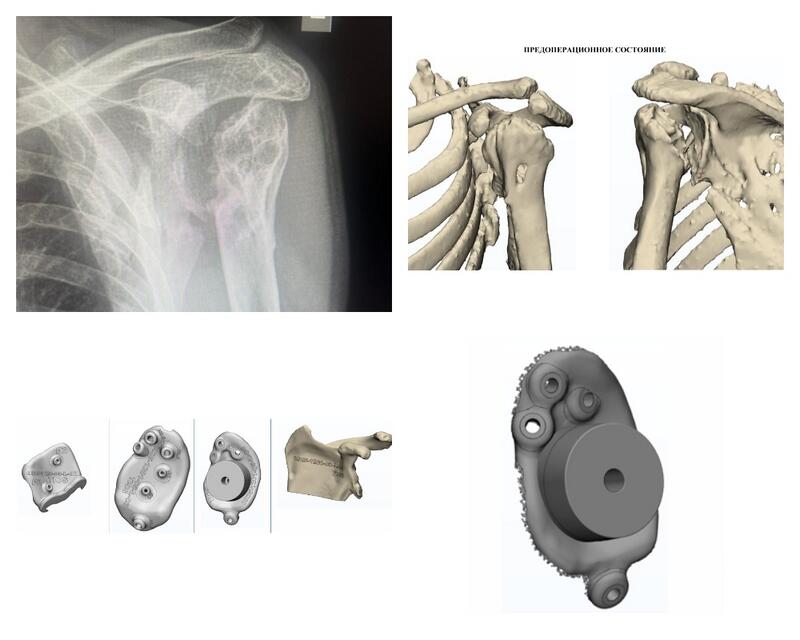 Обследования показали, что во время травмы плеча возникла не только посттравматическая деформация проксимального отдела плеча. У пациента отсутствовал суставной отросток лопаточной кости. Поэтому совместно с московскими инженерами был разработан титановый имплантат.