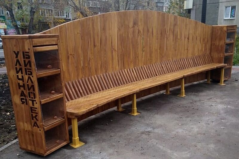Так, недавно между домами 107 и 111 по улице К. Маркса появилась скамейка с полками для книг.
