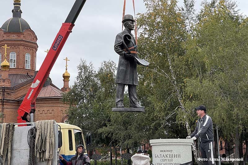 В самом центре городского сада — на пересечении аллей, расположенных от входов с улиц Володарского и К. Маркса, — установили памятник Сергею Балакшину — основателю курганского машиностроения.
