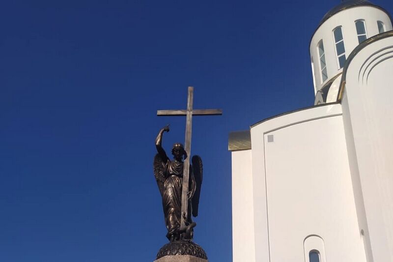 На набережной, у Свято-Троицкого храма, установили фигуру ангела.