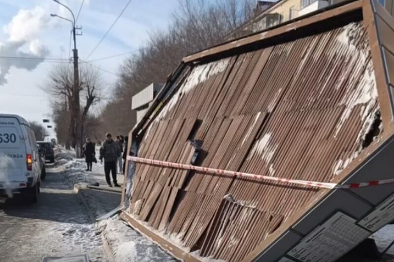 «Водитель допустила наезд на препятствие в виде остановочного комплекса», — уточнил он. На видео видно, что автомобиль снес опоры остановки. Крыша обрушилась.