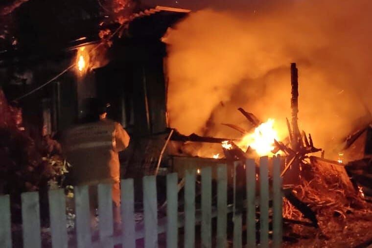 На момент прибытия пожарных открытым огнём горела кровля одноэтажного двухквартирного брусового дома на площади 160 кв. м. В 00 часов 37 минут огонь удалось локализовать, в 3:23 — ликвидировать открытое горение. В 7:20 утра на пожаре по повышенному «Рангу пожара №2» была объявлена полная ликвидация.
