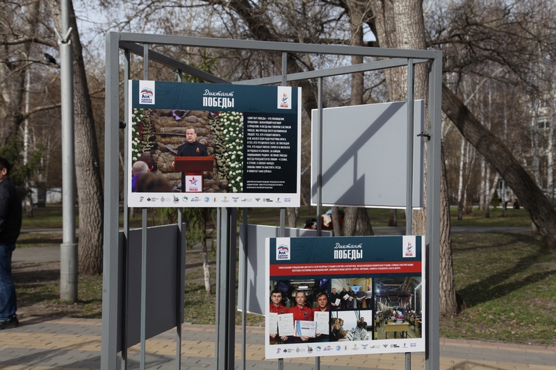 В парке Победы Кургана 20 апреля открылась экспозиция, посвящённая «Диктанту Победы». Организаторы планируют сделать её постоянной — посетители смогут узнать об истории акции, местах проведения, а также об участниках и известных людях, присоединившихся к проекту, сообщили организаторы.