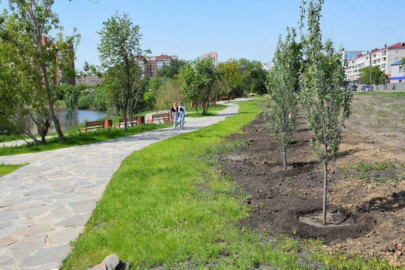 В Кургане вдоль Битевки высадили аллею пирамидальных тополей