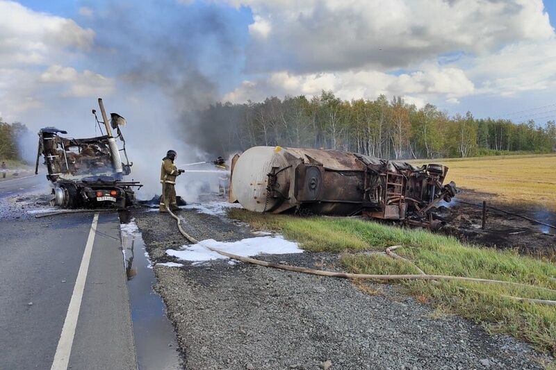 7 сентября в 14:05 на 376-м километре автодороги «Иртыш» бензовоз столкнулся с легковым автомобилем, отлетел в кювет и вспыхнул. Загорелась и трава.