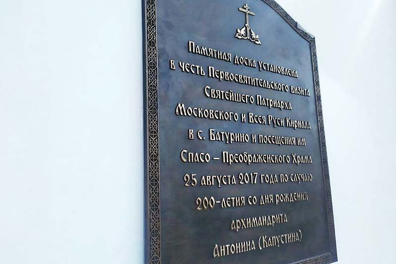 Сегодня, 23 августа, день 205-летия архимандрита Антонина (Капустина) в селе Батурино торжественно открыли памятную доску в честь визита Святейшего Патриарха Московского и всея Руси Кирилла.