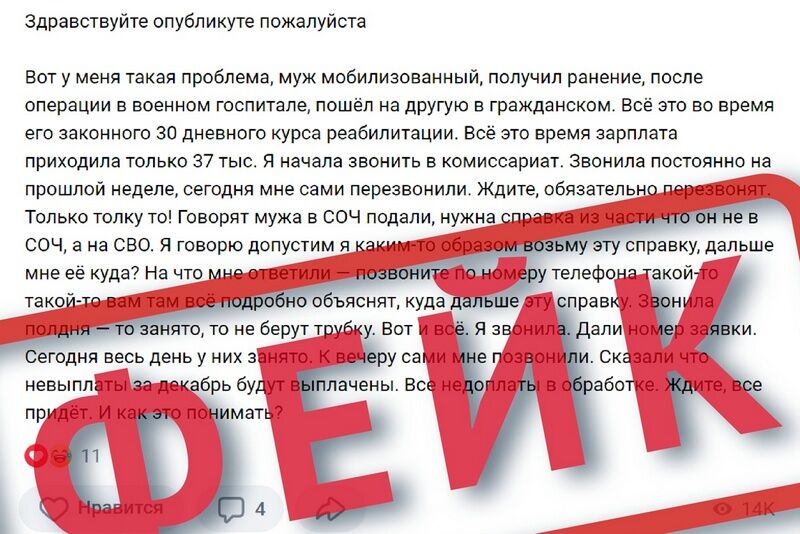 В социальных сетях Зауралья распространяется анонимное сообщение о том, что мобилизованный не получил положенные выплаты. Об этом сообщает Центр управления регионом Курганской области.