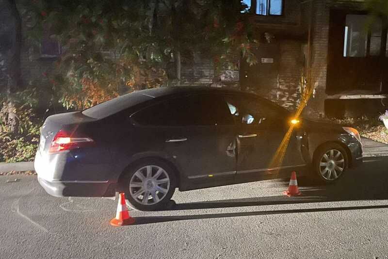 Пешеход 2014 года рождения шёл по проезжей части во дворе и неожиданно развернулся в сторону попутного автомобиля Nissan Teana.