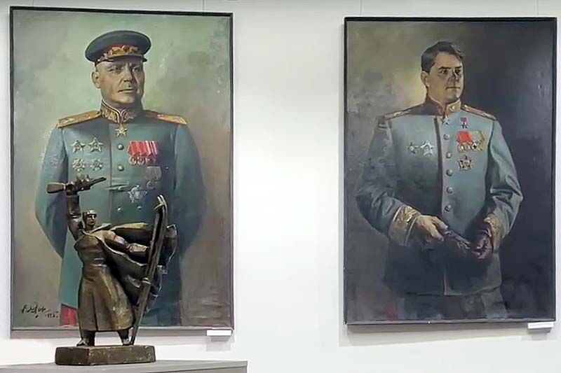 Курганская выставка может похвастаться четырьмя картинами его кисти. Это портреты Ивана Конева, Николая Воронова, Константина Рокоссовского, Александра Василевского. Впечатление производят неизгладимое, даже слегка подавляют масштабом – в длину все полотна метра по два.