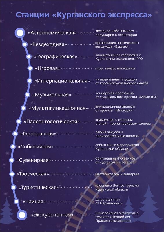 «На станциях вы сможете познакомиться с арктическим вездеходом «Бурлак», анимационными фильмами от проекта «Мистория», гигантом степей – трогонтериевым слоном, событийными мероприятиями Курганской области», — рассказали в музее.