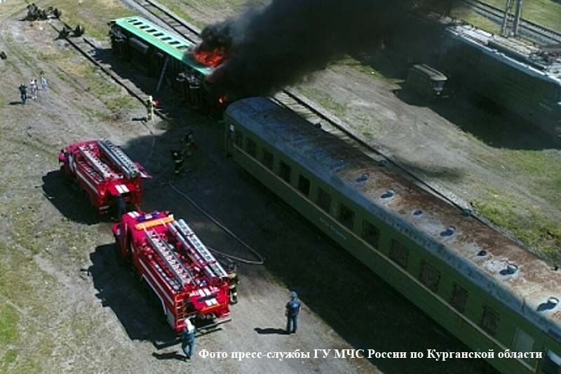 По сценарию учений вагон сошел с рельсов, опрокинулся на бок и загорелся. Площадь возгорания составила 80 квадратных метров. Огонь, кстати говоря, был самый настоящий, хотя крушение вагона было имитацией.