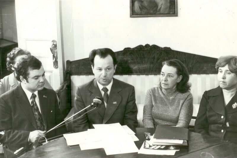 На снимке: Нина Акимовна Николаева и Святослав Александрович Малиновский на встрече с курганцами в музее декабристов. Запись для радио ведет корреспондент Вячеслав Аванесов. Март 1976 г. Фото Владимира Маленкова