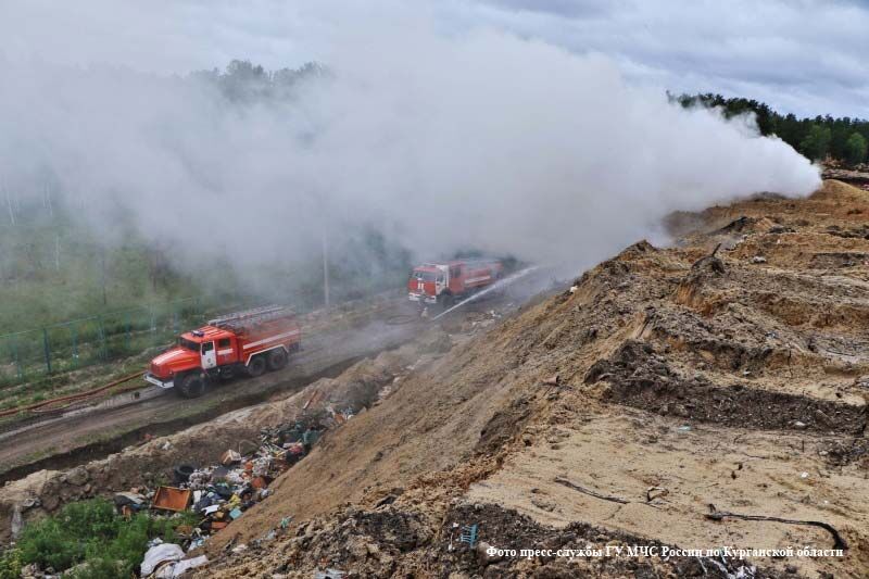 Сегодня, 29 июня, огнеборцы продолжают проливку территории полигона, чтобы избежать возникновения новых очагов пожаров. На полигоне выравнивают и засыпают песком тлеющие участки – это позволяет перекрыть доступ кислорода в слои мусора и предотвратить горение внутри них. Еще одна задача – не допустить, чтобы продукты горения твердых бытовых отходов распространились на территорию Кургана, так как они содержат большое количество опасных канцерогенов.