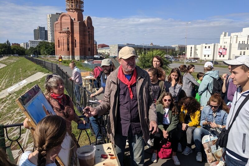 Работая не покладая кисти, на открытом воздухе, творцы успевали проводить бесплатные мастер-классы, участниками которых стали воспитанники детских художественных школ и школ искусств, начинающие художники.