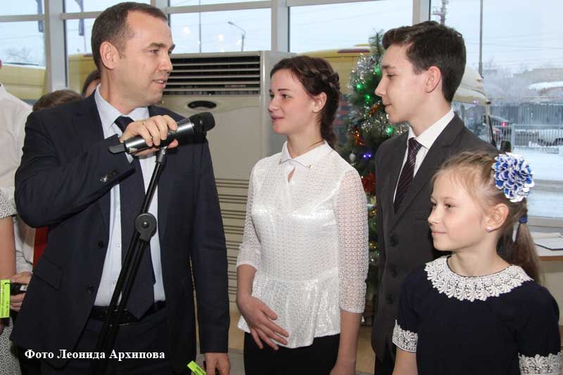 17 декабря в курганском автоцентре Ford врио губернатора Курганской области Вадим Шумков торжественно вручил детям из восьми районов Зауралья ключи от новеньких школьных автобусов. «Мы вам – автобусы, а вы нам – знания!» – сказал школьникам действующий глава региона.