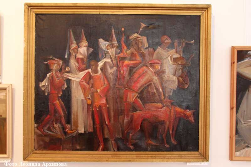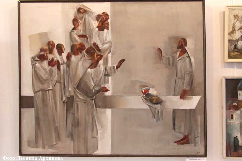 Внимание зрителей наверняка привлечет «Скрипач» – пронзительная картина, на которой изображен гениальный физик Альберт Эйнштейн. Рядом – кочаринская версия «Тайной вечери», где все действующие лица не сидят за столом, а стоят. А вот знакомый каждому курганцу собор святого Александра Невского в городском саду, и дети, самозабвенно играющие в снежки рядом с храмом. Приковывает взгляд псковский пейзаж с монахом, написанный на загрунтованном вафельном полотенце. Клетчатая фактура ткани подчеркивает тектонику собора. У каждой картины Кочарина можно стоять подолгу, а потом не раз возвращаться к ней мысленно, разгадывая новые и новые пласты метафор, открывающиеся внимательному взору.