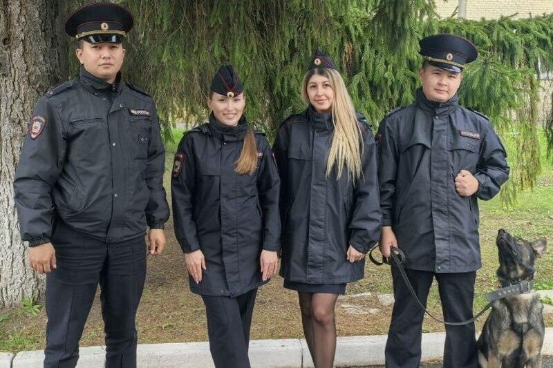 Полиция Курганской области приводит состав группы: участковый Ридаль Кулахметов, инспектор по делам несовершеннолетних Рамина Наумова, инспектор по исполнению административного законодательства Эльвира Чапочкина, кинолог Фирдиян Иксанов со служебной собакой Логаном.