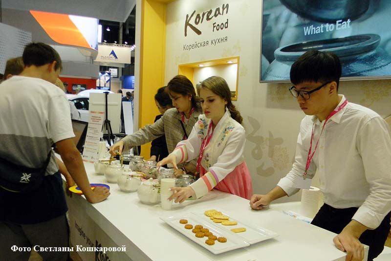 Китайцы угощали грибами — сухими и маринованными и прочими национальными блюдами, включая странные напитки в виде супа, к столу с корейским чаепитием и необычными печеньками тоже выстроилась внушительная очередь. Неподалеку шел показ корейских фильмов с субтитрами, а все желающие могли примерить диковинные национальные наряды.