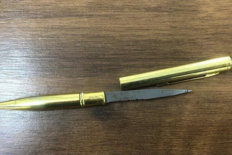 Во время досмотра внимание судебного пристава привлекла металлическая ручка, которая оказалась тяжелее обычной. Когда сотрудник службы попытался снять колпачок, обнаружил под ним тонкое длинное лезвие.
