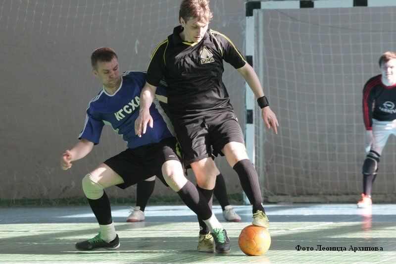 Следом на площадку вышла «Зима» это самое первое место себе возвращать. Делать это команде пришлось без своего лидера и главной атакующей силы – Андрея Фролова, который в эти минуты защищал честь курганского «Тобола» в матче первенства страны по большому футболу. Соперник у «черных» был более грозный – «КГСХА». Однако, «студенты» неожиданно пришли на игру против лидера… впятером. Казалось, при игре без замен с таким соперником у «КГСХА» не было шансов, и даже игроки «Пятака» потеряли надежду на чудо. А «Зима» тем временем спокойно забила два мяча и повела 2:0… «КГСХА» отквитала один гол до перерыва, но сомнений в победе «черных» по-прежнему не было.