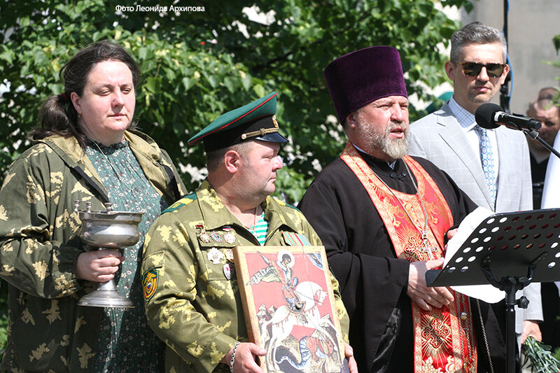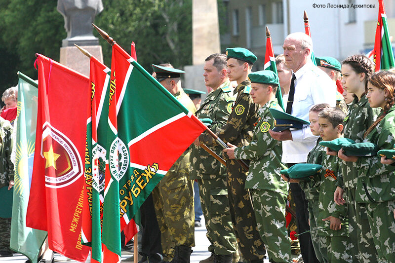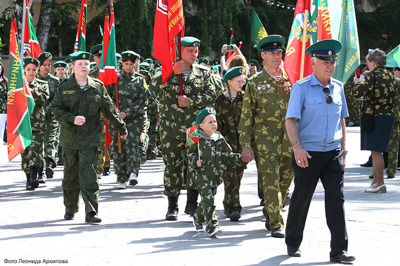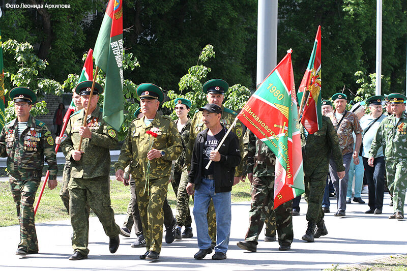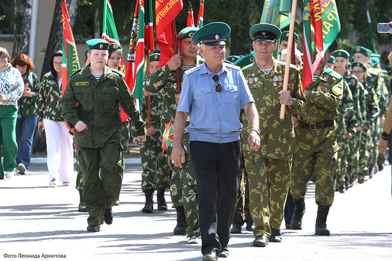Ветераны-пограничники, воспитанники отряда «Юные друзья пограничников» прошли торжественным маршем по центральной площади города до памятника «Пограничникам всех поколений», где состоялся торжественный митинг.