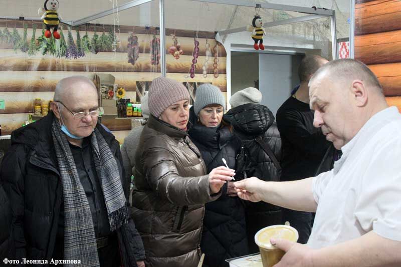 Посетители могут приобрести и натуральные масла, изготовленные по старинным русским рецептам, сыры, продукцию пчеловодства, лекарственные сборы, настоящие русские валенки, одежду из хлопка, льна и шерсти.