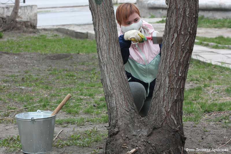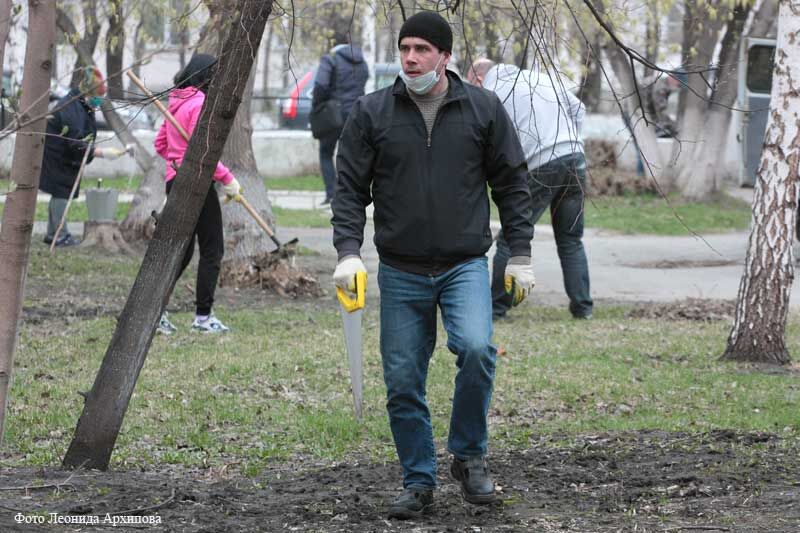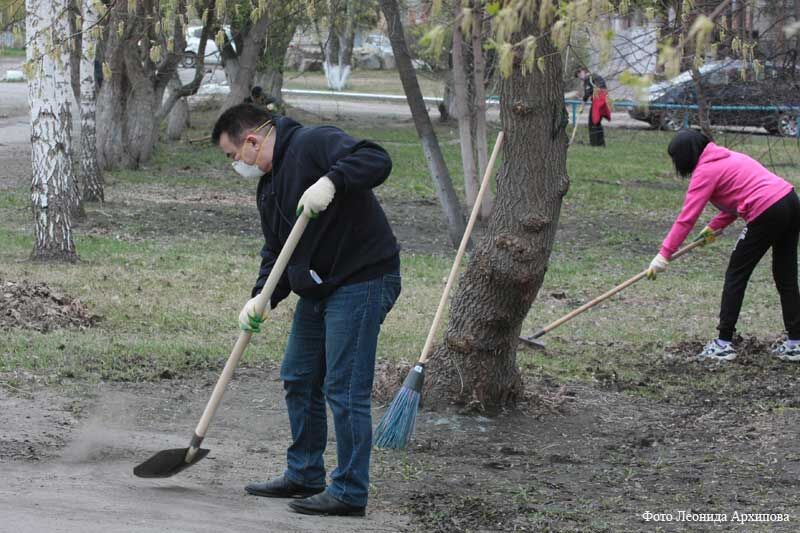 Сотрудники администрации города Кургана провели субботник в Бошняковском сквере.
