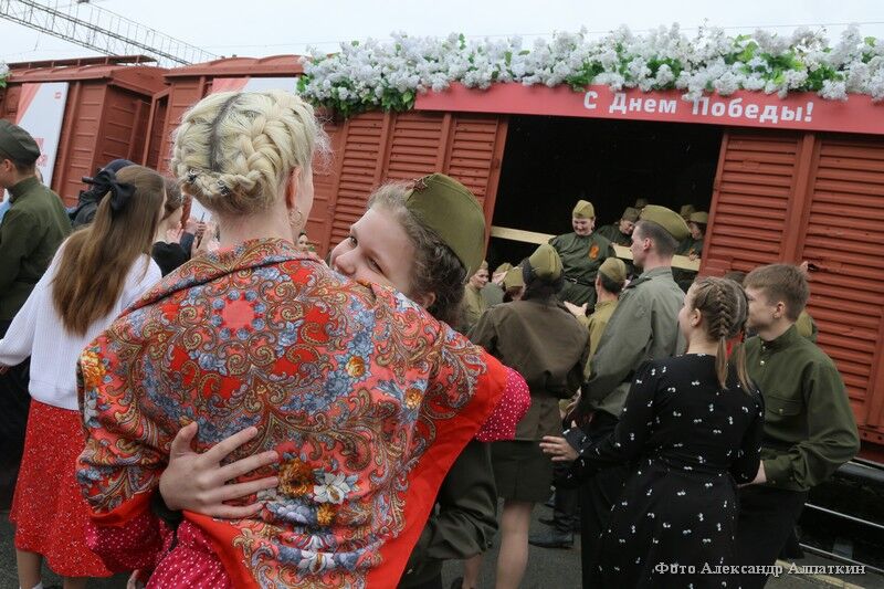 ОбществоВ Кургане встретили поезд ПобедыУтром 8 мая на первый путь станции Курган прибыл поезд Победы. 08.05.25 Фоторепортаж Александра Алпаткина. ПоделитьсяАвторизуйтесь, чтобы оставлять комментарии от своего имени.