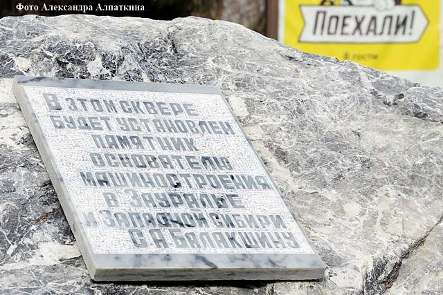 Сегодня в рамках торжеств в честь 140-летия со дня рождения Сергея Александровича Балакшина, отмечаемого 22 апреля, в Кургане был торжественно открыт закладной камень. Табличка на камне сообщает: «В этом сквере будет установлен памятник основателю машиностроения в Зауралье и Западной Сибири С.А Балакшину». Торжество прошло близ размещения областного департамента промышленности, по улице Гоголя, 25.