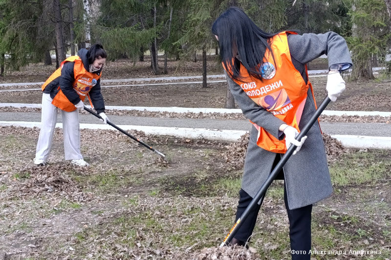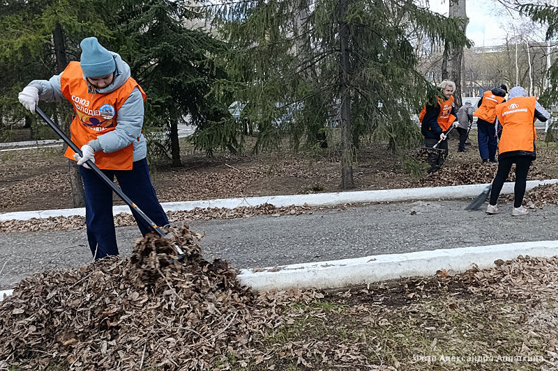 Молодёжь и ветераны машиностроительного завода провели совместный субботник в сквере предприятия.