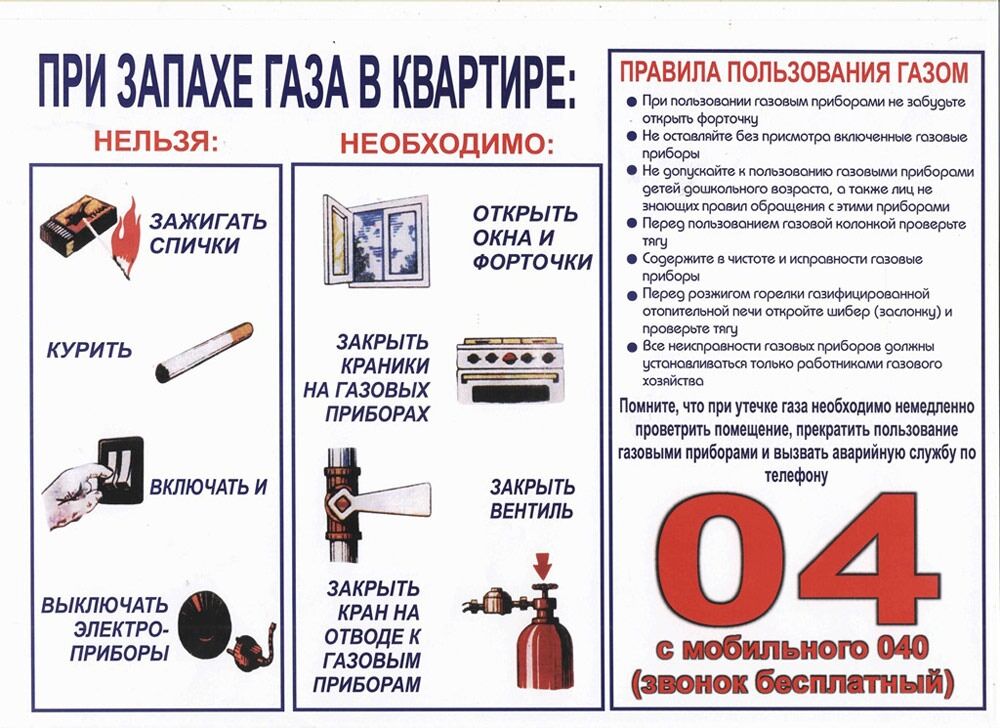 Если в квартире или в коридоре чувствуется резкий запах газа, необходимо поступить следующим образом: